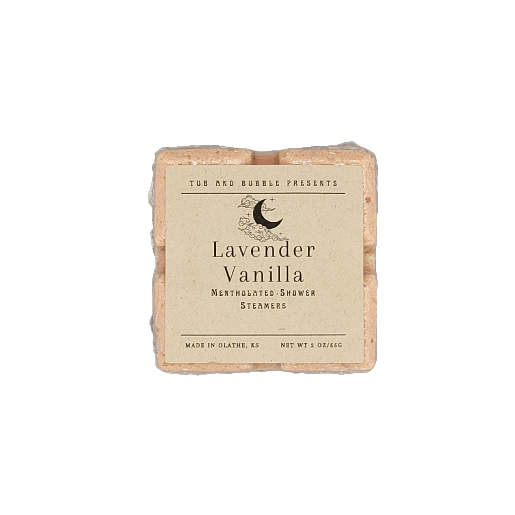 Our Shower steamers are naturally colored with clay, and infused with menthol crystals and fragrant essential oils to uplift or sooth your spirit in the shower, depending on what you use! Our mold allows for your shower steamer to be broken into four separate bricks, allowing you to adjust the intensity of your scented experience.