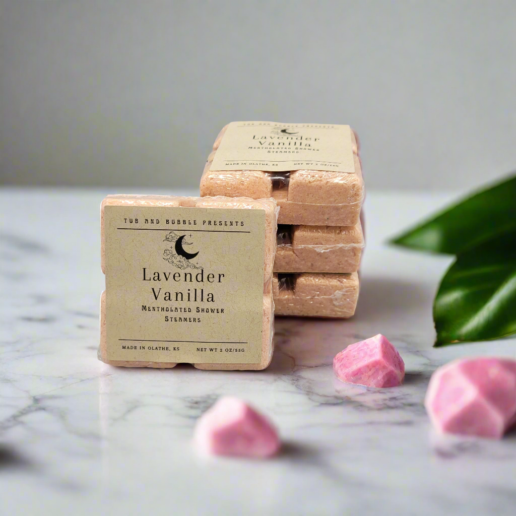 ***PLEASE NOTE: Due to the inclusion of menthol crystals, these shower steamers are intended for shower use only. Never use a shower steamer as a replacement for a bath bomb. Menthol gives an extreme cooling effect, and can irritate delicate or sensitive areas of the skin. This product is only intended for use at the base of a shower, where no direct contact to skin occurs.